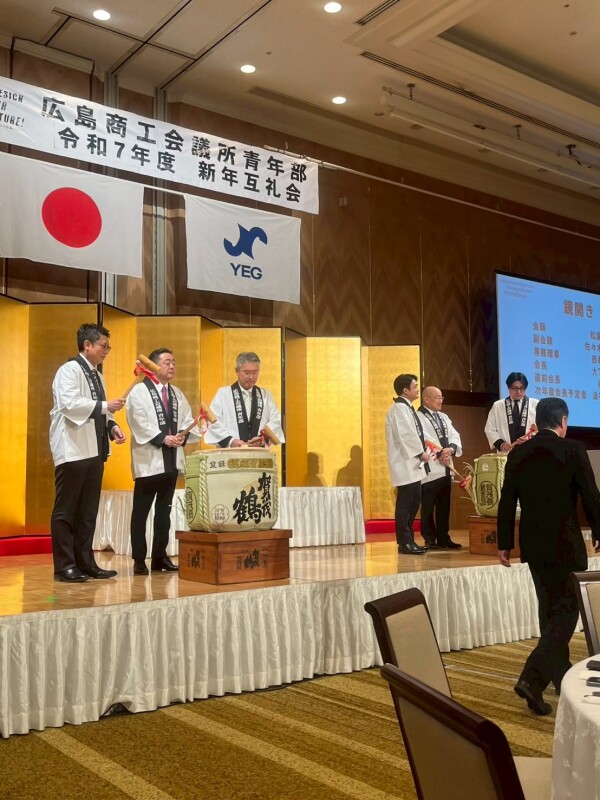 当日は多くの皆様にご参加いただき、会場は新年にふさわしい厳かさと華やかさに包まれました。賀詞交換や鏡開きを通じて、世代や立場を越えた対話が生まれ、新年の門出をともに祝う中で、広島YEGとしての一体感が一層高まる場となりました。